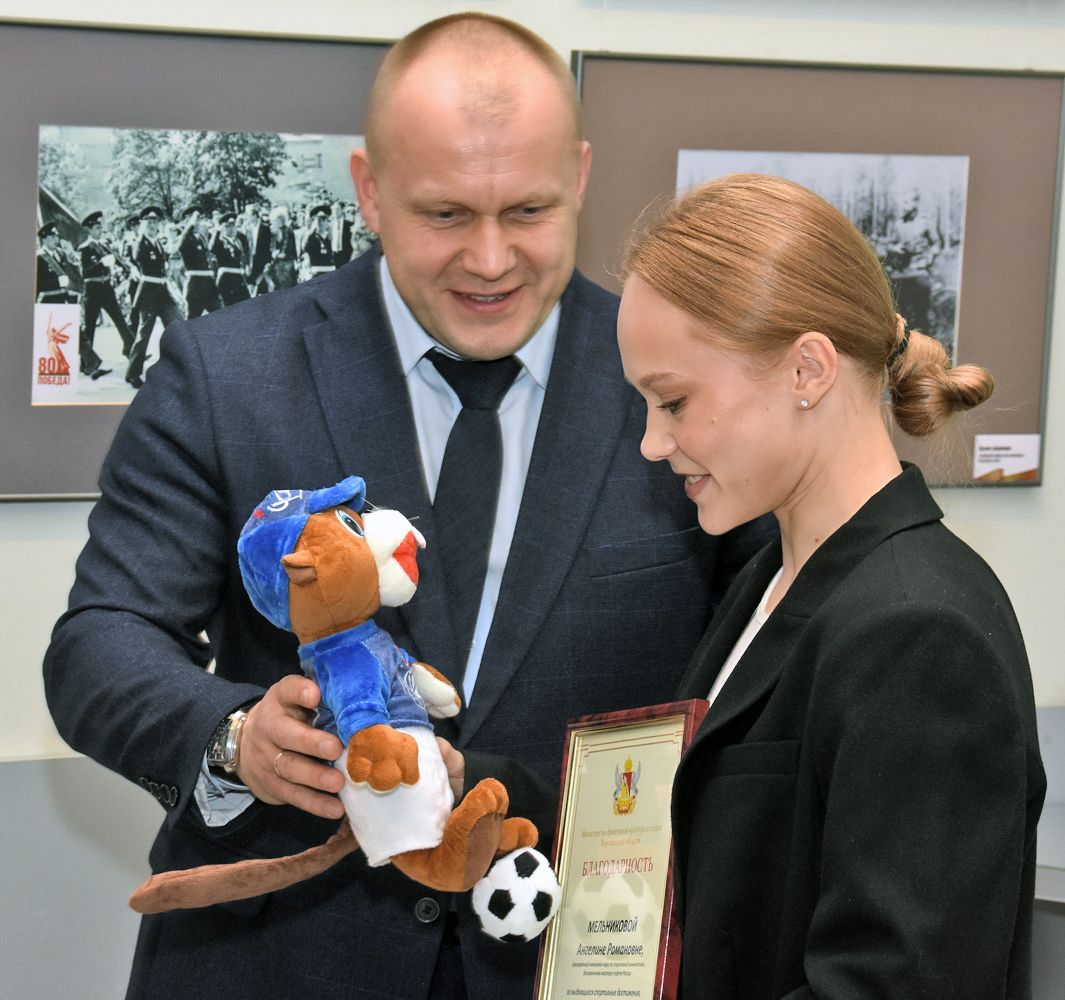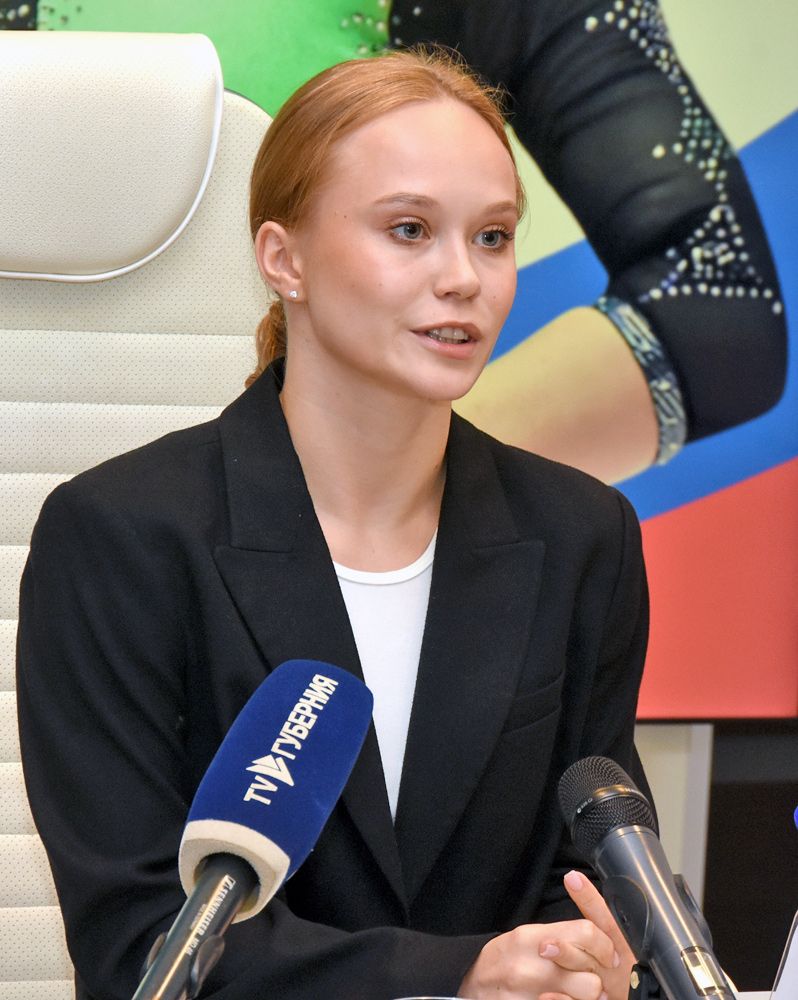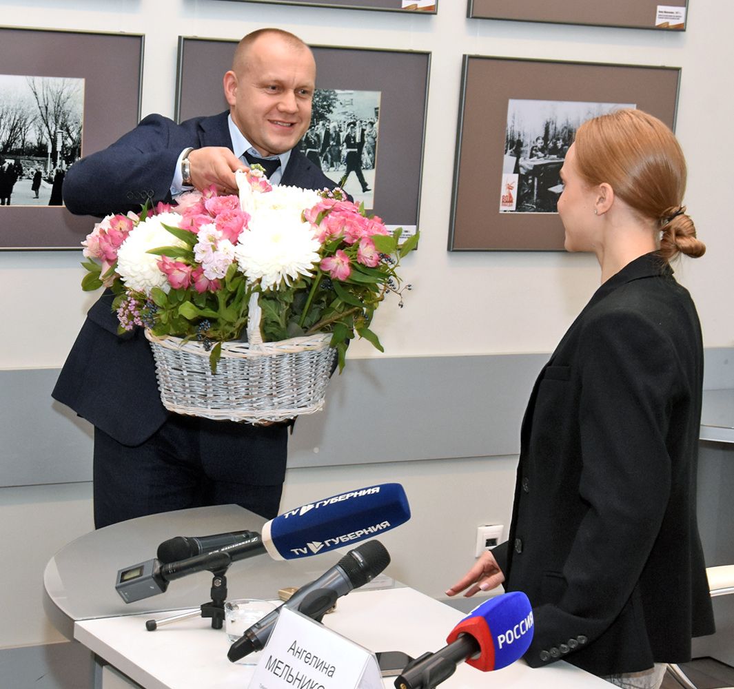 Недавно 25-летняя гимнастка вернулась с чемпионата мира в Индонезии, где выступала под нейтральным флагом. Там наша землячка завоевала два золота и серебро. В пятницу, 31 октября, в областном Доме журналистов прошла пресс-конференция Ангелины, перед началом которой её поздравил министр спорта региона Павел Чибисов, вручивший девушке корзину цветов и небольшого бобра в бейсболке с надписью... «Факел», таким образом чётко обозначив спортивные приоритеты региона. Ангелина же рассказала журналистам о многом.