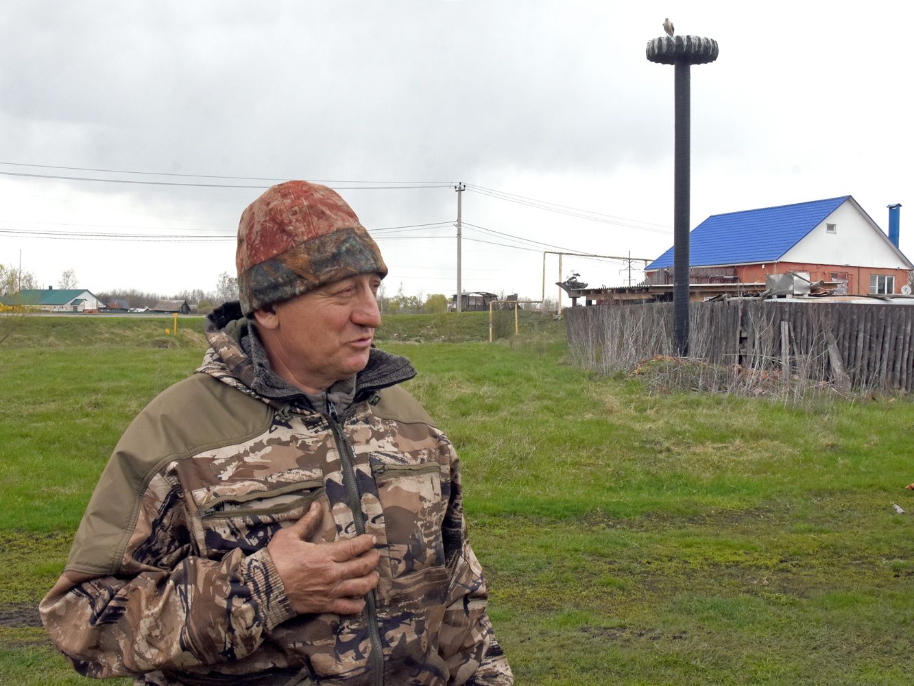 К жителю села Ступино третий год подряд прилетает пара аистов — Виталий Артёмов обустроил им гнездо и кормит красивых птиц чуть ли не из рук